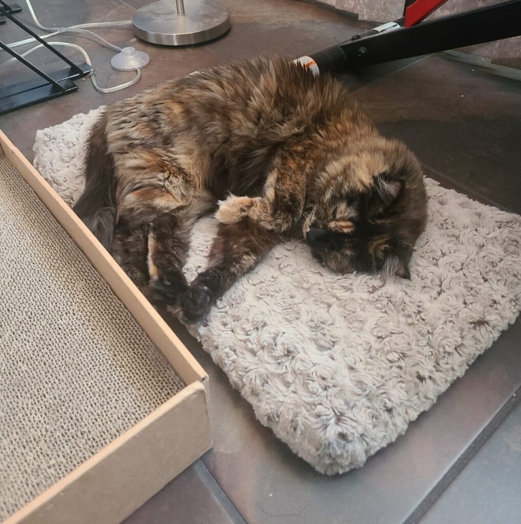 Ares enjoys being overlord of the house, napping during appointments, can never get enough attention, and will sometimes perform for treats. Trained to stay off massage table, and will stay out of massage room upon request.